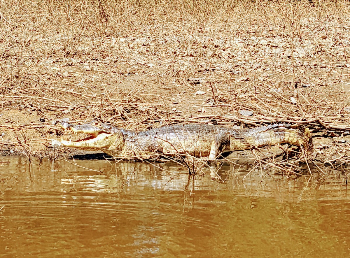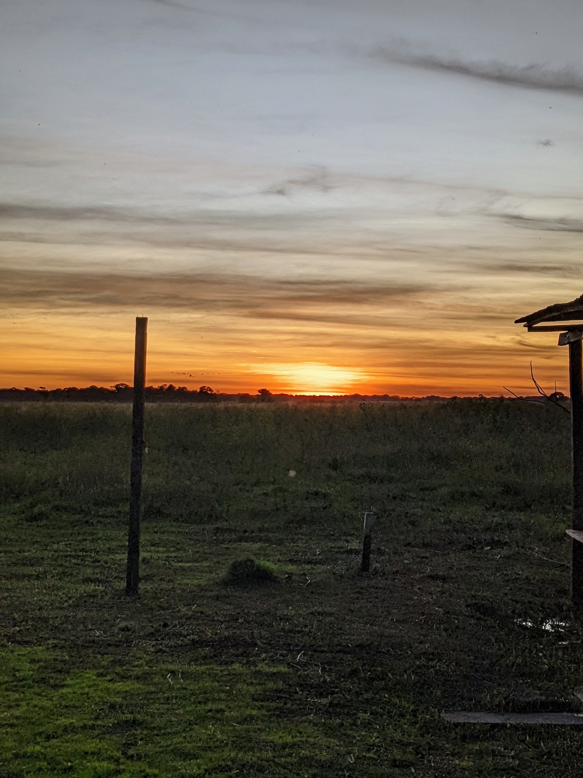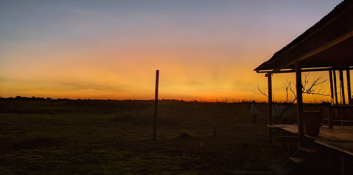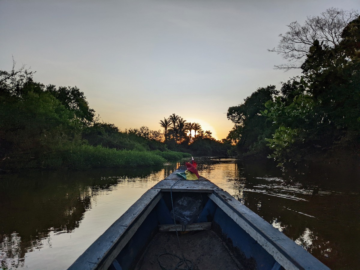 Am Nachmittag gehen wir dann Piraña fischen, die wir zum Abendessen kochen. Das Fischen ist sehr einfach, mit Schnur und Haken daran. Wir fischen gelbe und rote Pirañas🤙 Danach sehen wir noch einmal den Sonnenuntergang. Am Abend gibt’s ein Campfeuer und Jojo, unser Guide, macht Musik. Wir verbringen den Abend mit der Gruppe, die einen Tag nach uns begonnen hat – spannende Leute (vier Freunde, die in Washington DC leben, einer davon Bolivianer, die anderen drei Russen). Wir legen uns kurz vor 23:00 schlafen, damit wir am nächsten Morgen um 6:00 losgehen können um den Sonnenaufgang zu sehen.