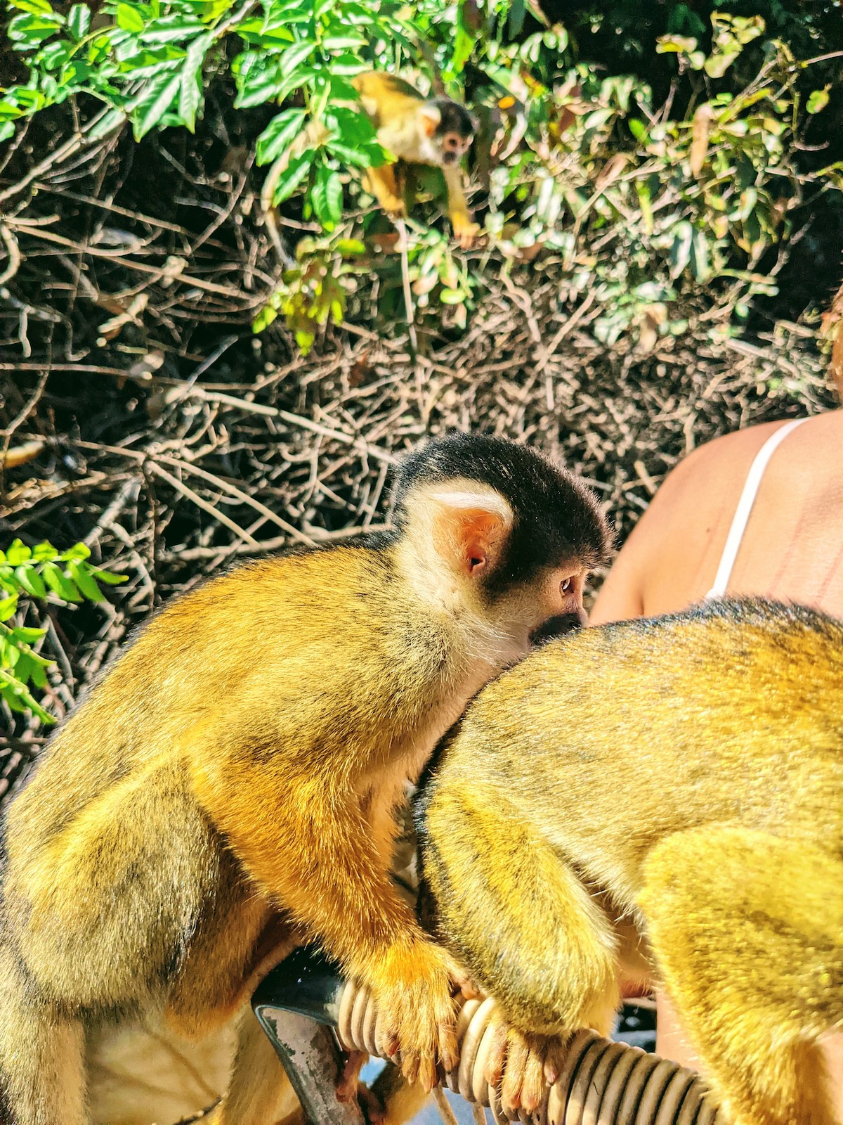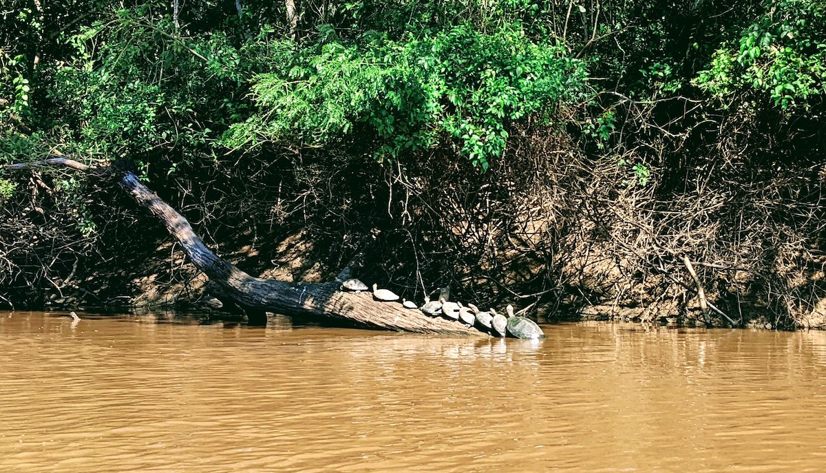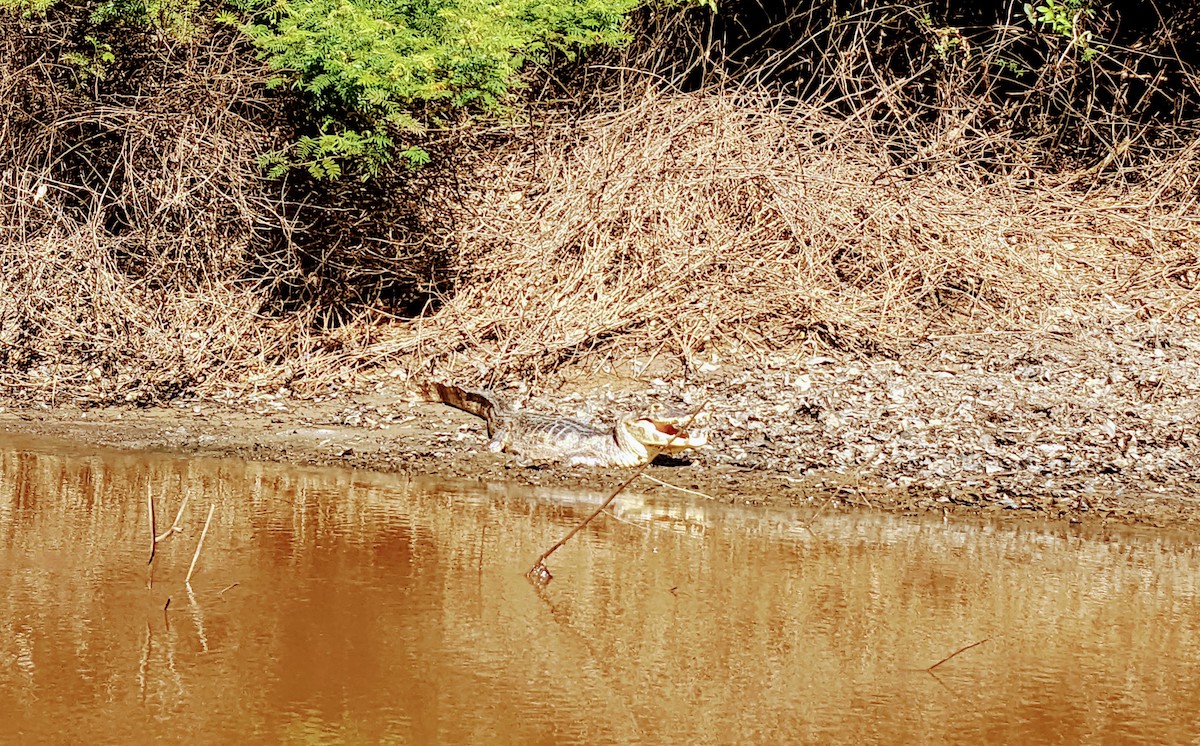 ich schlafe aber mehr als auf den meisten Bussen davor😇😴 wir kommen am morgen um 6:00 in Rurrenabaque an und gehen zu Fuss ins Zentrum, um dort bei der Agentur die Tour anzufangen. Mit einem Van geht’s dann von dort aus in die Region Madidi Pampa. Wir fahren 3 Stunden über eine 30 Meter breite Schotterstrasse, manchmal werden die entgegenkommenden Fahrzeuge links gekreuzt, manchmal rechts – eine wilde Fahrt. Nach einem Mittagessen in Santa Rosa geht’s noch 10 Minuten bis wir aufs Boot steigen. Bereits zu Beginn sehen wir schwarze Kaymane (Krokodile), die an den Ufern lauern. Los geht’s 2.5h in Richtung unseres Camps. Wir sehen Schildkröten, viele Vögel, Aligatoren, Delphine und Affen – die Affen gefallen mir am besten, diese verspielten, kleinen Wesen!🤩🚀 Wir erreichen unser Camp am späteren Nachmittag, richten uns ein und gehen danach noch den Sonnenuntergang schauen. Ich bin sehr müde und schlafe wie ein Baby💪🚀