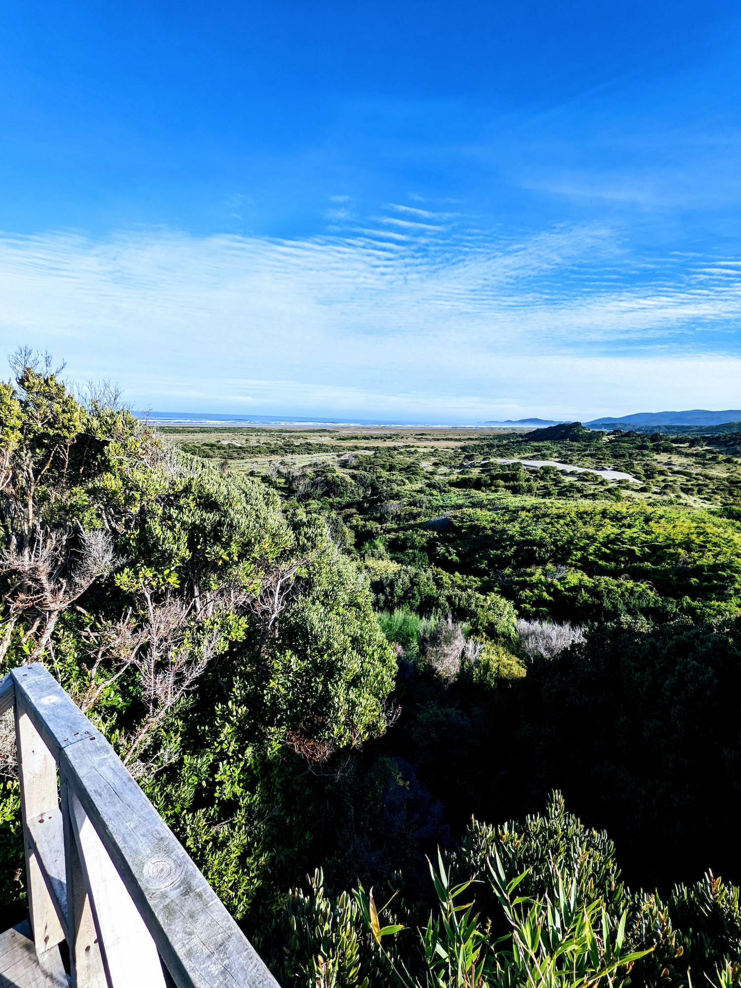 Am Folgetag nehme ich den Bus nach Cucao an der Westküste, ich möchte die «Muelle de las Almas» sehen. Mit dem ersten Bus um 8:30 komme ich um 10:00 beim NP Chiloé an, wo ich zuerst etwas verloren bin, es gibt keine Infos und Orientierungshilfen😅 Mittels Maps.me finde ich einen Pfad, der zu einem Aussichtspunkt sowie ans Meer führt. Am Meer treffe ich Paolo und Catalina, die offenbar auch an der gleichen Ort wie ich wollen und mir zudem erzählen, dass es noch die «Muelle los tiempos» gäbe, die auch schön sei.
