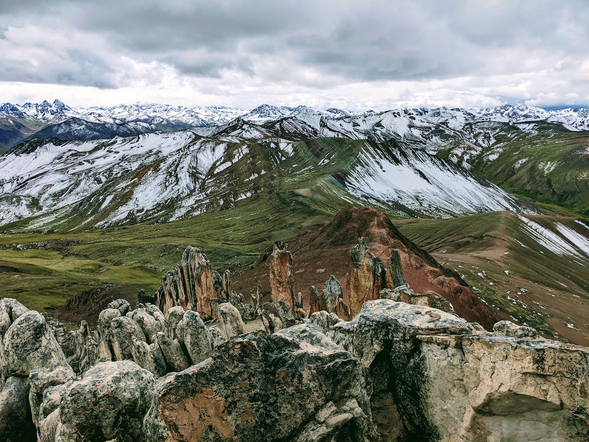 Am Abend gehen wir fein essen, aber ich gehe auch nicht allzu spät ins Bett, da ich am kommenden Tag um 6:00 los muss.Am Samstag geht’s zum Palcoyo, der Alternative, die momentan anstatt dem Rainbow Mountain angeboten wird. Offenbar gibt es politische Konflikte, sodass momentan niemand zum Rainbow Mountain hochgelassen wird. Wir fahren 3.5 Stunden in einem Van an einen Ort, der auf 4’700m(!) liegt. Von da aus geht’s dann auf den Palcoyo, der leicht eingeschneit ist. Der höchste Punkt liegt auf 4’980 Metern – eine ganz neue Erfahrung für mich, ich habe keine Ahnung wie ich reagiere🤷 Das Ganze geht aber überraschend gut über die Bühne und ich verspüre keinerlei Symptome😇 natürlich brauche ich mehr Energie zum Atmen respektive komme viel schneller ausser Atem. Jedoch habe ich keine Kopfschmerzen, Schwindel, oder Ähnliches🙌