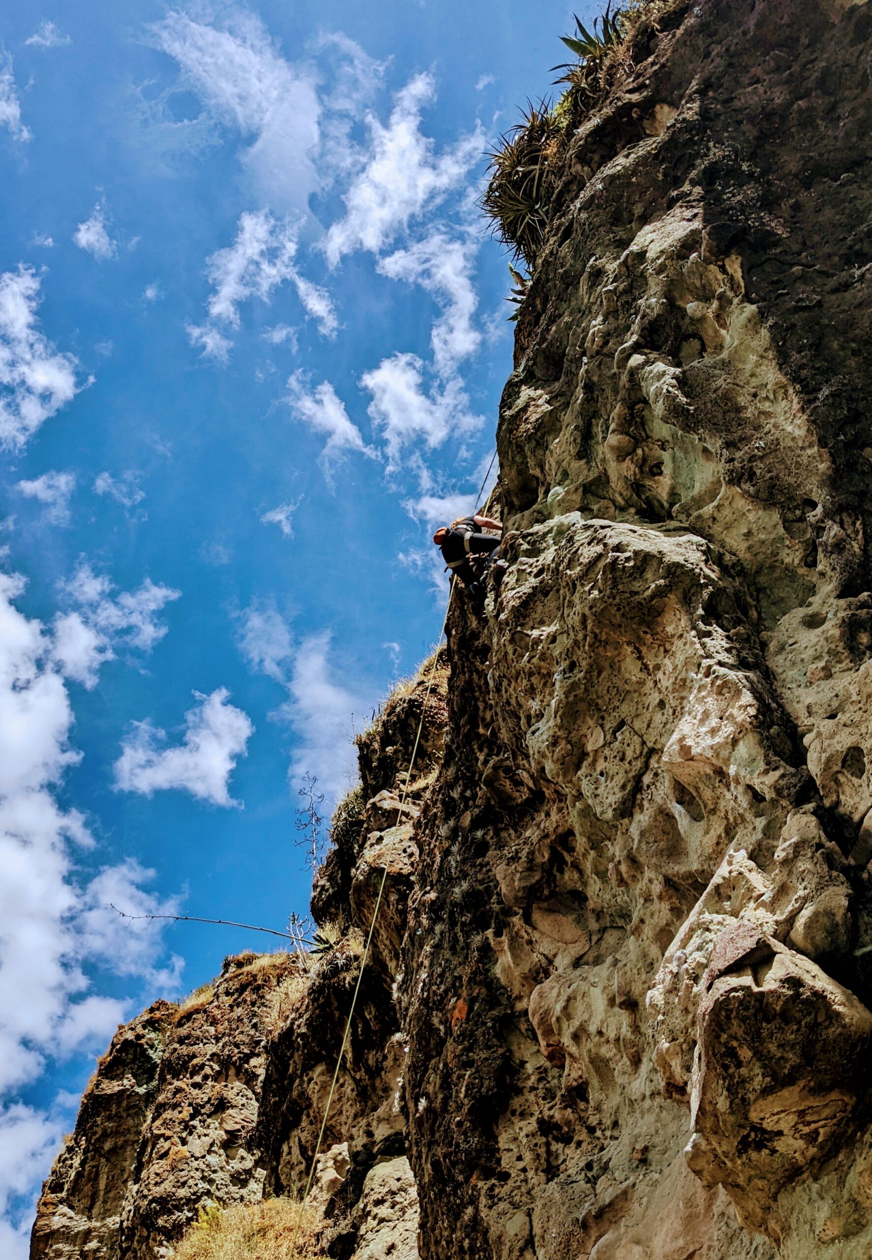 Am kommenden Tag geht’s um 9:00 los und wir gehen mit Carlos nach Los Olivos zum Klettern. Der Ort ist zu Fuss in 20 Minuten von Huaraz zu erreichen. Wir durchqueren einige Quartiere mit vielen aggressiven Strassenhunden. Zum Glück weiss Carlos all deren Namen, was die Hunde jeweils sofort zähmt🙌